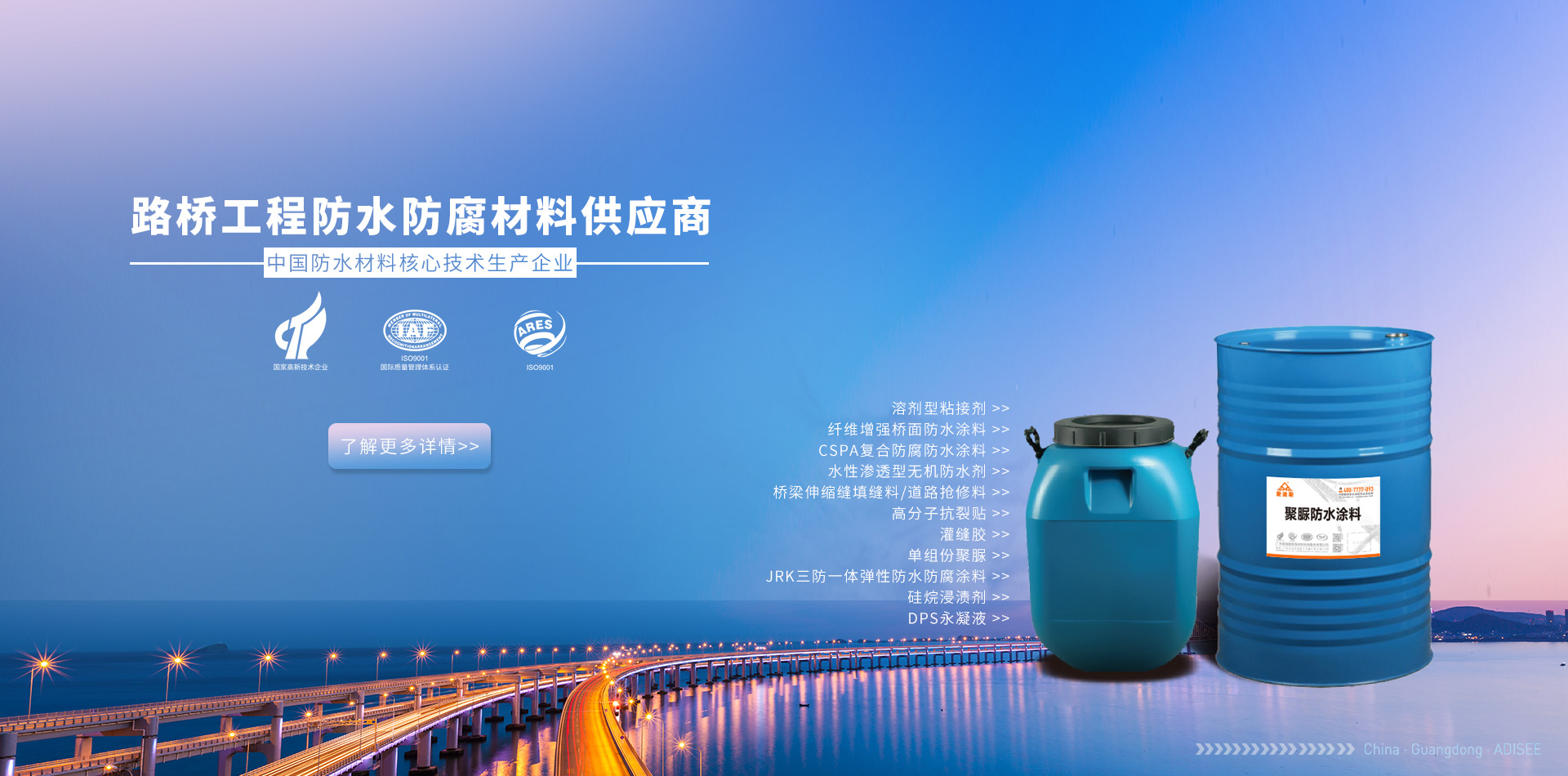 修繕補(bǔ)漏防水系列 廣東愛迪斯新型材料科技有限公司廣州分公司 隔音隔熱系列 路橋及防腐防水系列 家裝工程防水系列 修繕補(bǔ)漏防水系列專業(yè)承接路橋防水防腐工程施工及防水材料銷售,路橋防水工程遍布全國各地,多年的技術(shù)經(jīng)驗(yàn)積累了一整套橋面防水病害處理方案,專業(yè)的路橋防水技術(shù),配套路橋防水施工設(shè)備,圓滿完成路橋防水施工任務(wù),用戶滿意度評價高,處橋梁防水行業(yè)技術(shù)領(lǐng)先水...